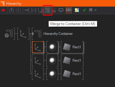 Aside from creating a group node in front of a bunch of hierarchy nodes to get a better kind of structure you can also merge nodes to a hierarchy container. Just select from where you would like to merge the nodes into a container and click  the Merge to Container icon in the top bar of the hierarchy editor or use the ctrl +  m shortcut. This creates a new node that contains all merged hierarchy nodes. It behaves just like its contained hierarchy tree.