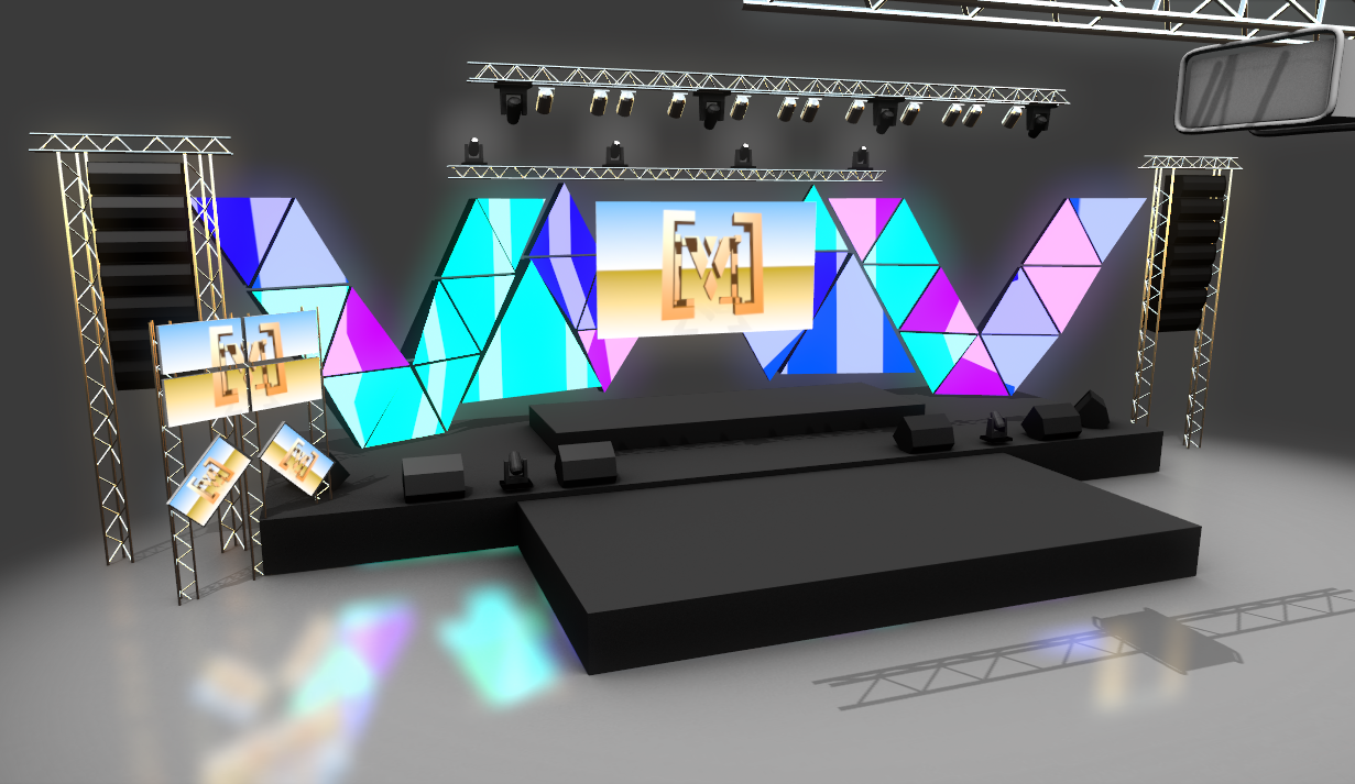 Ventuz can use or import several kinds of geometry files. A stage setup that has been created in an external program can be imported to Ventuz and added to. Standard units in this 3D object file can be used inside of Ventuz to easily apply a screen or LED wall to the geometry that is imported, removing the guess work.