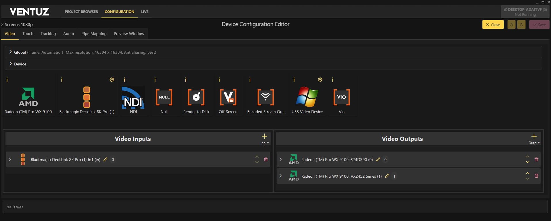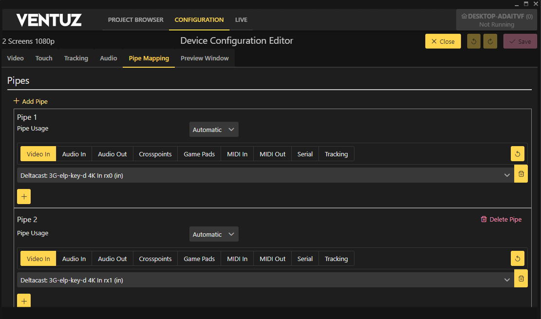 As a result, it is necessary to configure the number of Render Pipes independently. These Pipes can then be assigned to output streams later in the Video Output stream configuration.