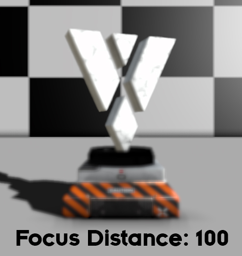 • Focus Distance: This sets the distance to the focus point. Notice how the Focus gets pushed further away from the point of view with higher input.