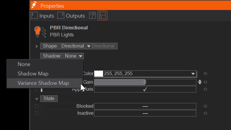 The PBR Light sources share the most properties shown above, they are just arranged slightly different to the traditional phong light sources above. PBR Light sources differ that they have just a single Color property, which links the Diffuse and Specular color and doesnt apply any kind of Ambient light. PBR Materials usally do not need any ambient since the usecase is to have a PBR SkyBox which lights up the material. Still, one can use the PBR Ambient to have a global ambient lighting for the PBR Material if needed.