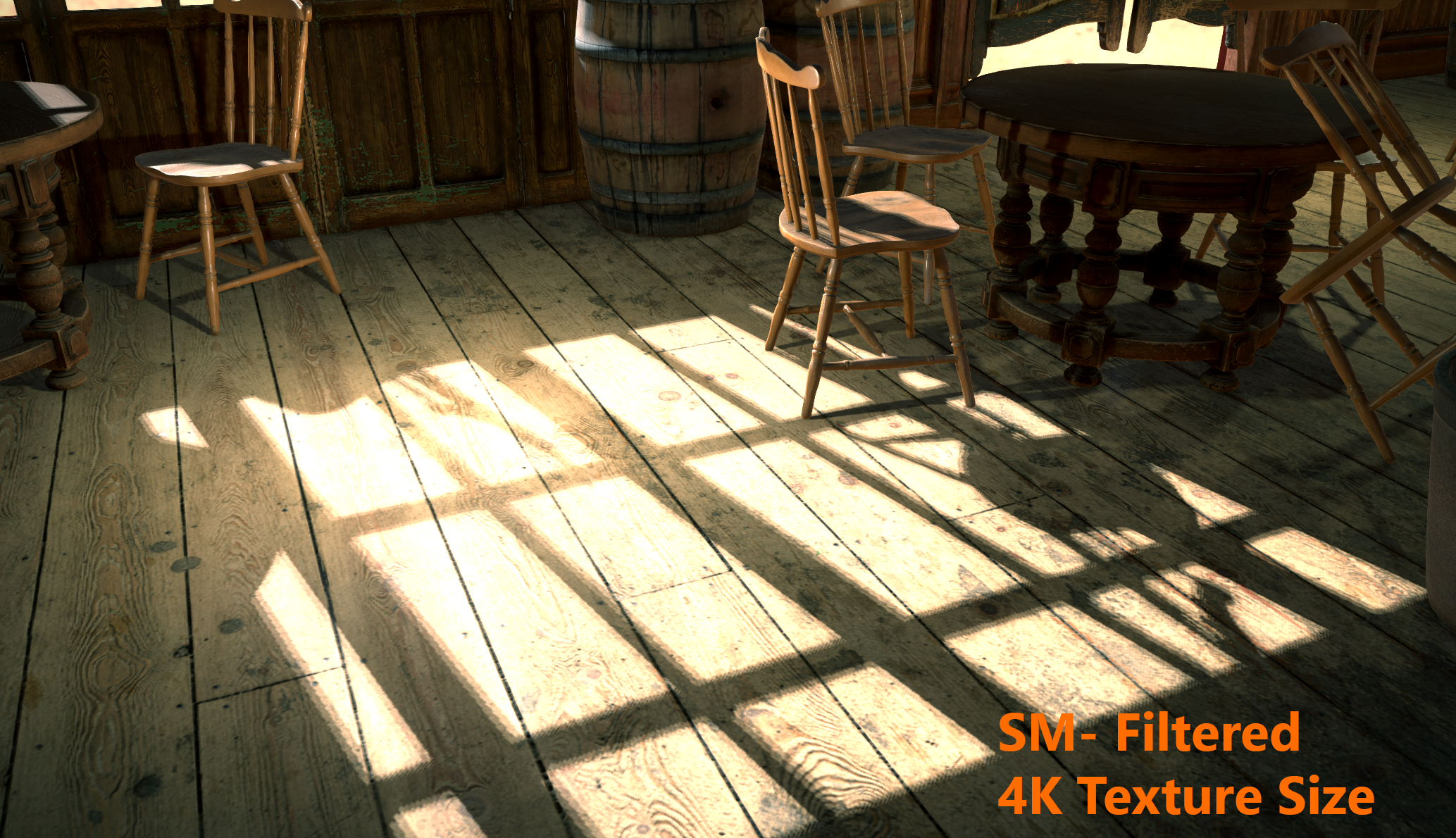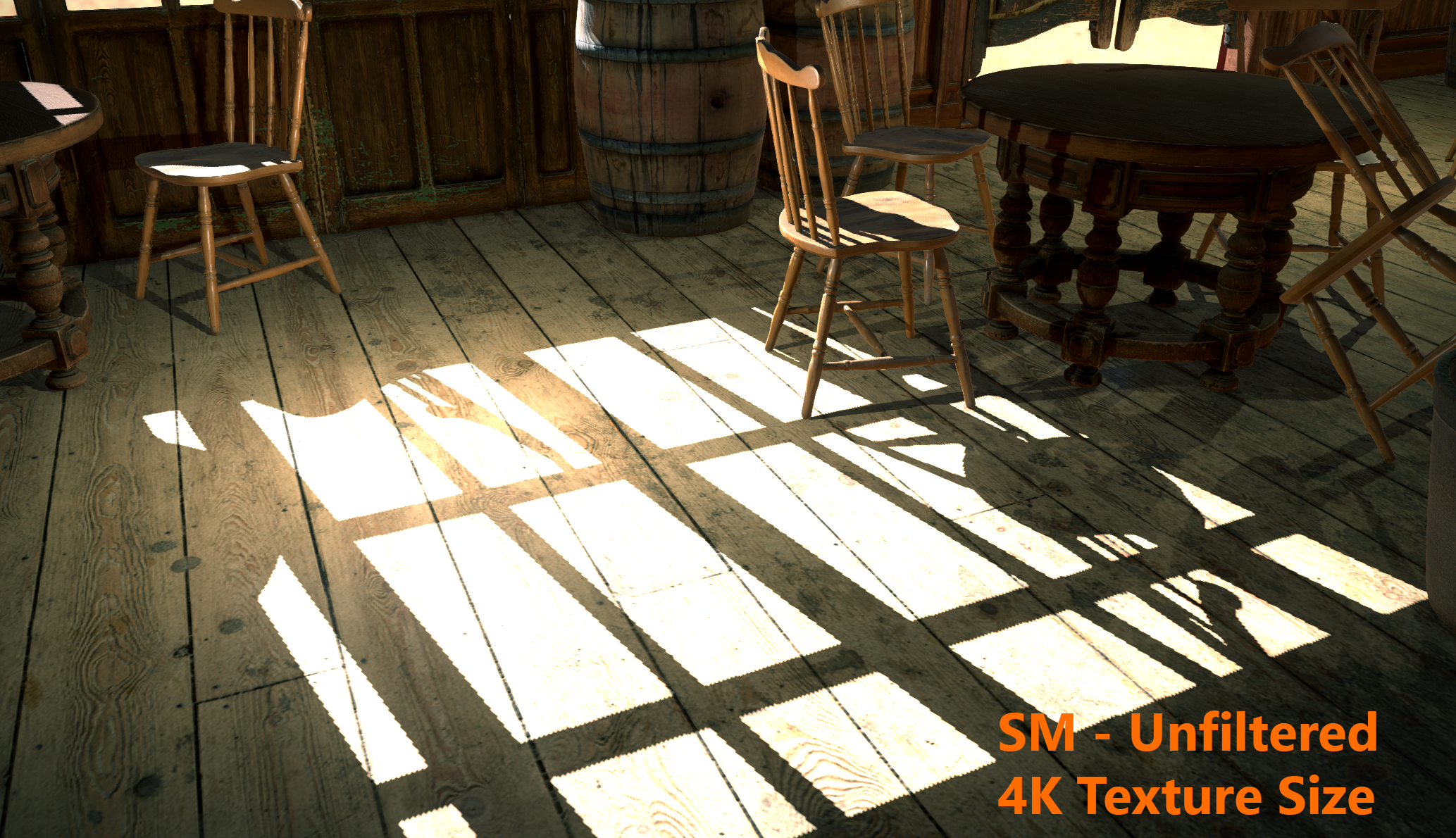 See a comparsion between Shadow Maps Un-/Filtered and VSM Un-/Filtered. Also take note that the resolution of the Variance Shadow Map is only 2k compared to the PCF, which is 4k!