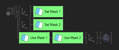 After a Mask is created, it can be used anywhere inside the same 3D Layer. Based on the Index, all elements behind the Use 3D Mask Node will be masked by the respective mask.