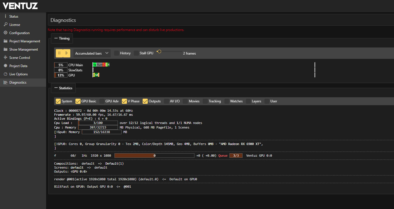 • Runtime (gray) : The Ventuz Runtime. All major processing should have it's own color, this catches smaller tasks that seemed unimportant to measure individually