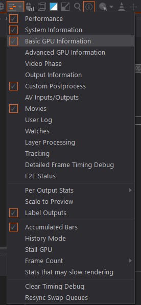 When playing low frame-rate video (24 or 30 fps) on full frame-rate outputs (50 or 60 fps), the GPU processing is not performed every frame. Turning on the History option for the performance timing reveals this: The GPU processing is done only every second or third frame. Be aware that while the average GPU load may be below 100%, individual frames may spike beyond the 100% mark.