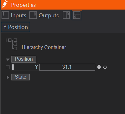 The small square on the left indicates the exposure state of the property. By double-clicking  on it or hitting the X key when the properties are selected, the user can assign a name, category and the default value of how the property should appear on the parent container level.
