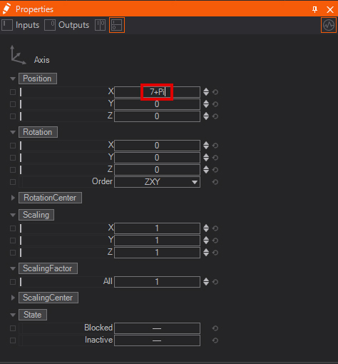 For numeric values you can use simple expressions. This can be useful for basic procedures like changing a value for the resolution from 1 Full HD screen to 7 screens by using a simple multiplication, or for more complex calculations using functions and mathematical constants. If the property allows a Simple Expression and you have typed a valid expression it is updated to the according value. If the expression is invalid