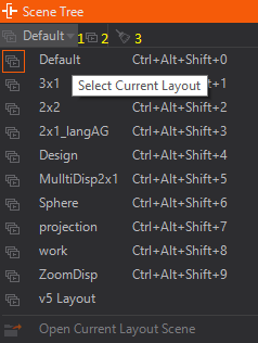 A Layout is a scene loaded by the project in front of the first 'user-scene' on Level 1. Layouts are placed on Level 0 and can be used to create multiple ports the Director can cue and take templates to (see Director Multichannel), do more complex setups or do global data processing.