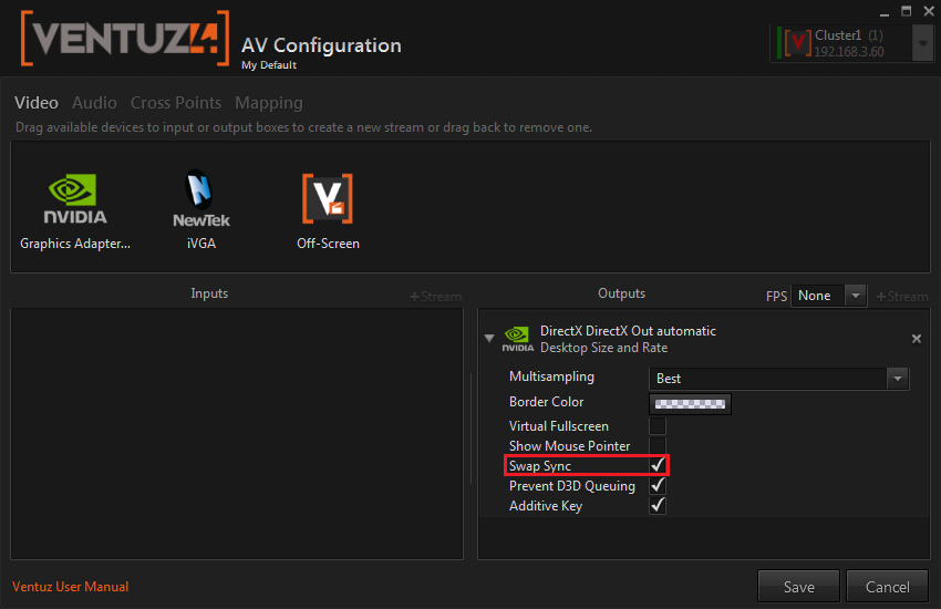 For synchronized Clusters in DirectX Output mode it is important to set the Prevent D3D Queuing to ON in the AV Configuration!