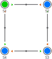 5. Move the mouse over S1, press and drag right mouse button to S2. This will create a connection between them. Do the same for S2 to S3, S3 to S4 and S4 to S1.