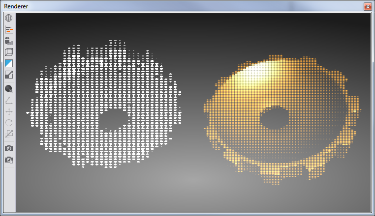 Every dot rendered can be modulated with various properties. DotSize defines the size of each dot rendered by this shader. Dots rendered by the shader are round. The shape of the dots will turn to rectangles if the dot size exceeds the distance between the dots - the Stride. Stride defines the distance between the dots rendered. The greater the Stride, the more space will be between all dots. Stride also influences the dot size. If the distance between all dots rendered is smaller than the dot size specified, the dots are automatically scaled to fit the Stride. Saturation adjusts the color intensity of the dots rendered. A Saturation smaller than 1 will create transparent dots. Saturation of 0 renders fully transparent dots.