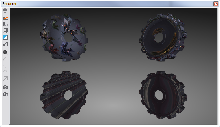 The properties AlignX and AlignY define the center for texture scaling and rotation. Via PositionX and PositionY the texture on a geometry can be moved along the X and Y axis. The property RotationZ rotates the texture on the Z axis. ScalingX and ScalingY scale the texture along the corresponding axes. ScalingFactorAll is a factor which is additionally multiplied on ScalingX and ScalingY to get the resulting scaling.