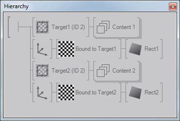 An second way of sharing render target is via the Render Target Reference node. This node can only be used within the same scene tree and shares the actual render target via Binding. The property RenderTarget has to be bound to the Texture output Property of the actual Render Target node. This technique is less error prone as there is no chance to assign different sizes or multisampling options.
