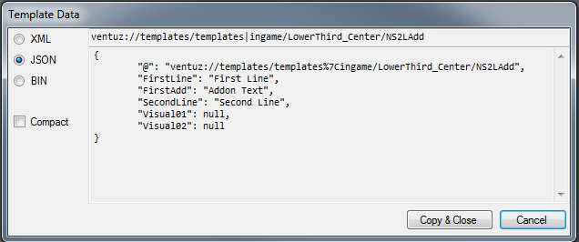 The Scene Data Editor provides the Template Data of each Template. This is helpful wherever it is needed to manually set the Template Data, for example when working with the Template Port or when it comes to Remoting. The Dataset can be used as a pattern for dynamically generated Template Data.